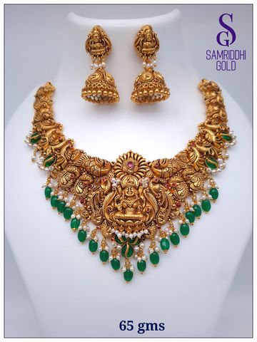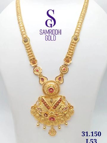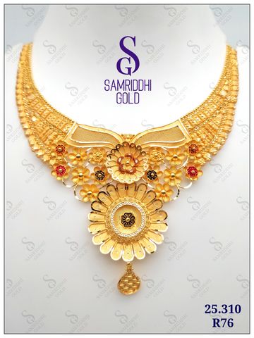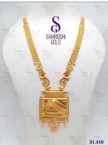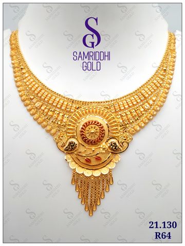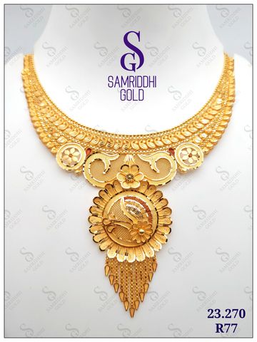 Experience the timeless elegance with our 22-karat gold necklace, a perfect blend of modern design and traditional motifs.